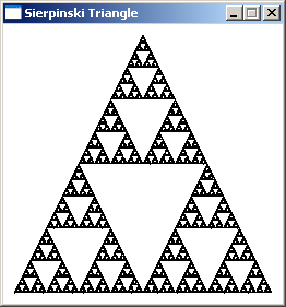 drawSierpinski(10, h - 10, w - 10, h - 10, w / 2, 10); //Call the sierpinski function (works with any